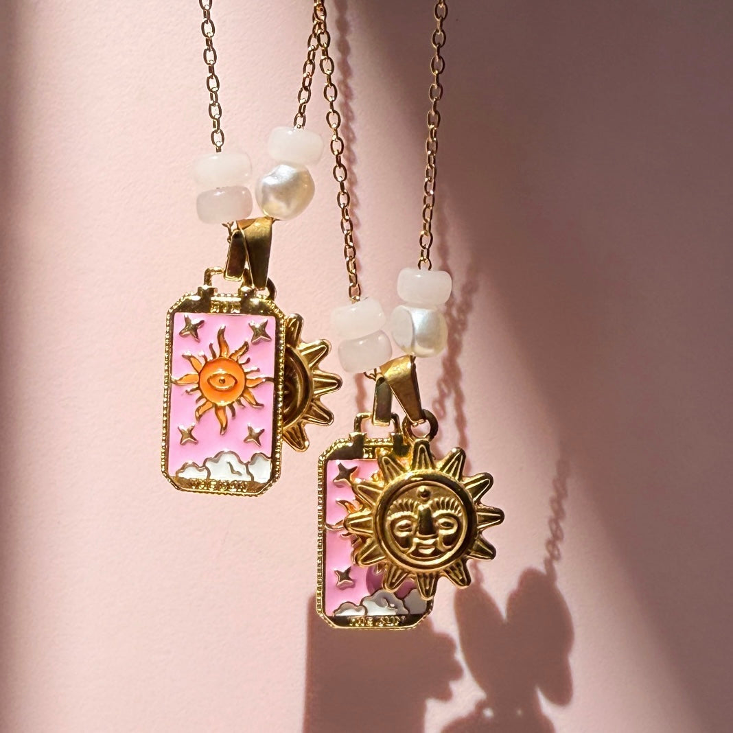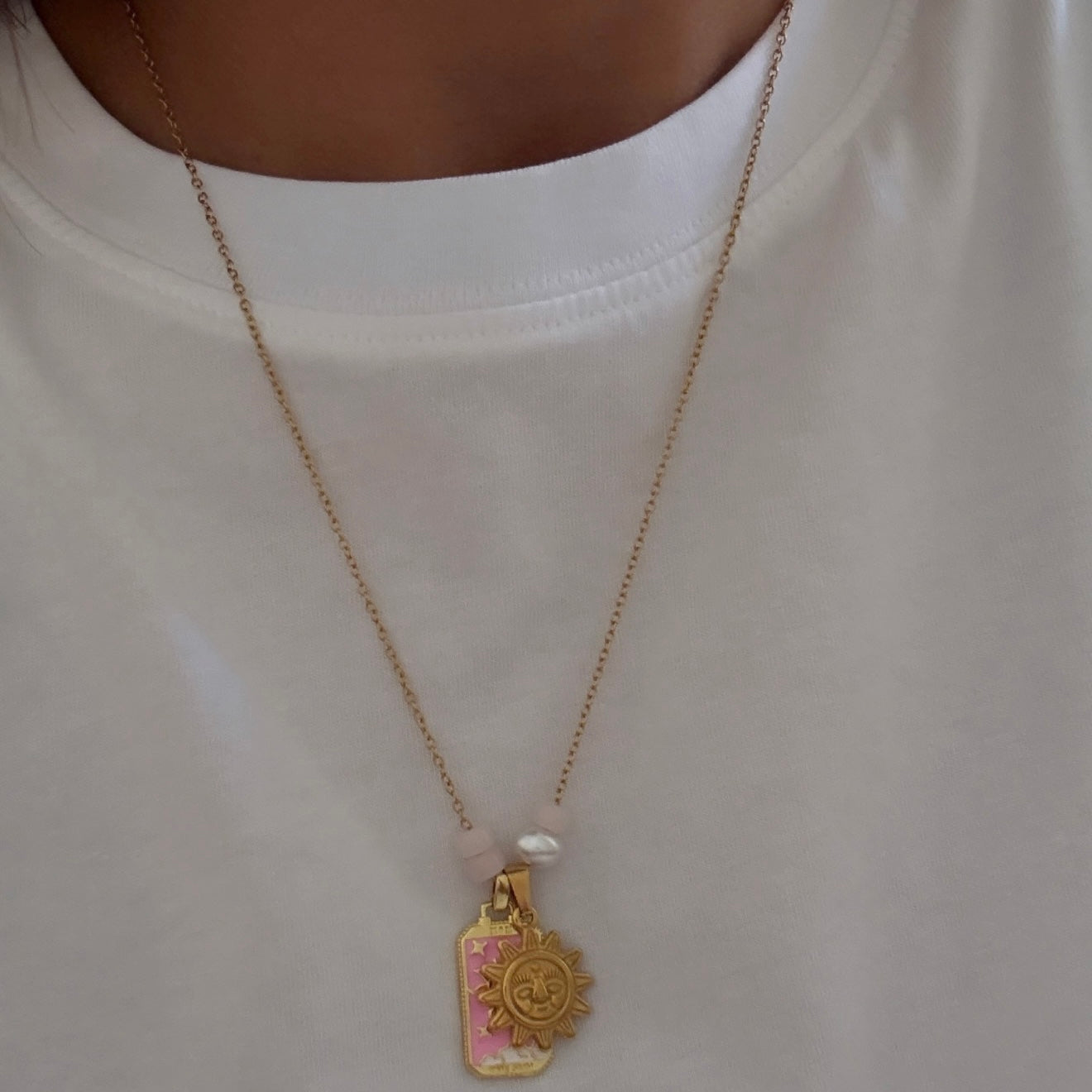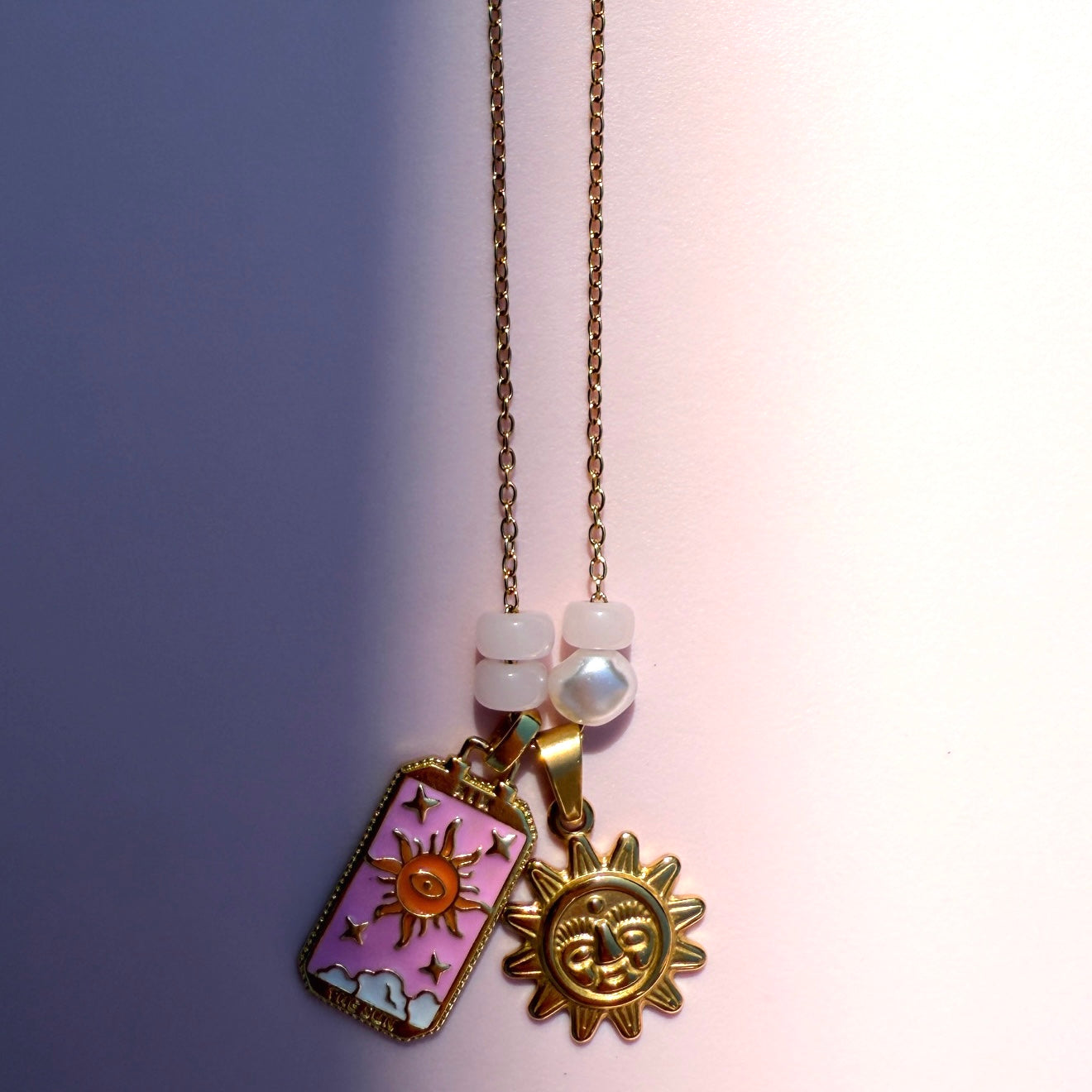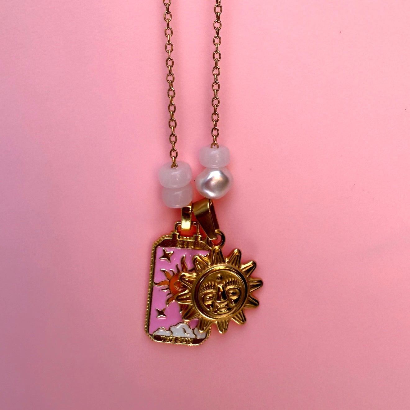 Ciondolo smaltato in ottone + ciondolo in acciaio inossidabile + perline di vetro